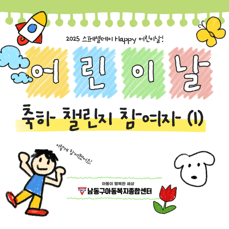 [2025 Happy 어린이날!] 어린이날 축하 챌린지 참여자(1) 페이지 정보 작성자 관리자 작성일25-04-30 10:09 조회696회 댓글0건 관련링크 이전글 다음글 목록 본문 어린이날을 맞이하여 세상 모든 어린이들을 축하해주기 위해 남동구아동복지종합센터에서 어린이날 축하 챌린지를 진행 중입니다 4월 넷째주 참여자들의 활동을 모아모아~ 게시합니다.어린이날 축하 챌린지 우리 이렇게 참여했어요!!! 어린이날 축하 챌린지는 5월 4일까지 진행 중이니, 자세한 사항은 공지사항의 스페셜데이[2025 Happy 어린이날!] 어린이날 축하 챌린지를 참고 부탁드립니다. *문의 사항은 남동구아동복지종합센터(032-421-6100)로 문의 부탁드립니다. 댓글목록 등록된 댓글이 없습니다. 이전글 다음글 목록